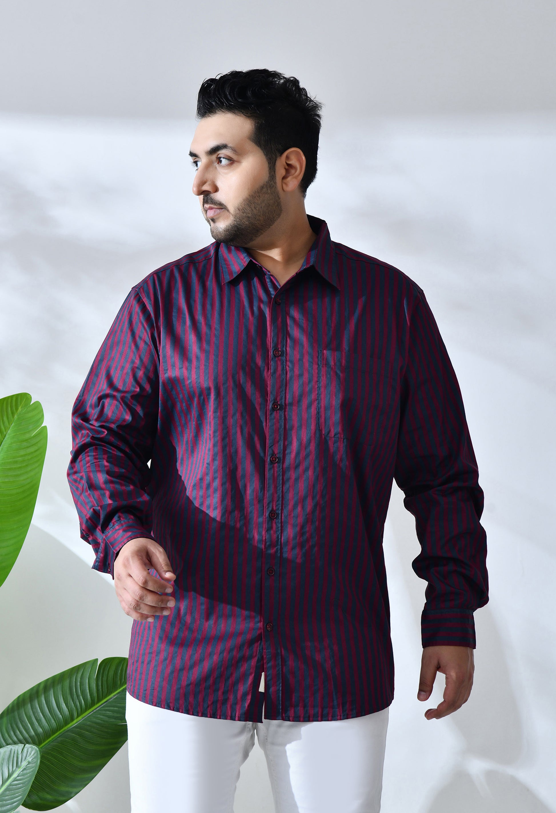 1 Pocket Maroon and Grey Stripes Shirt, Looks a true classic. A perfect shape, a premium quality Cotton and a beautiful Color that is easy to pair with jeans or chino’s looks very handsome and casual, out-of-office style, daily wear, shirts is made of lightweight, soft fabric, stylish and comfortable. long regular sleeves, curved hem
