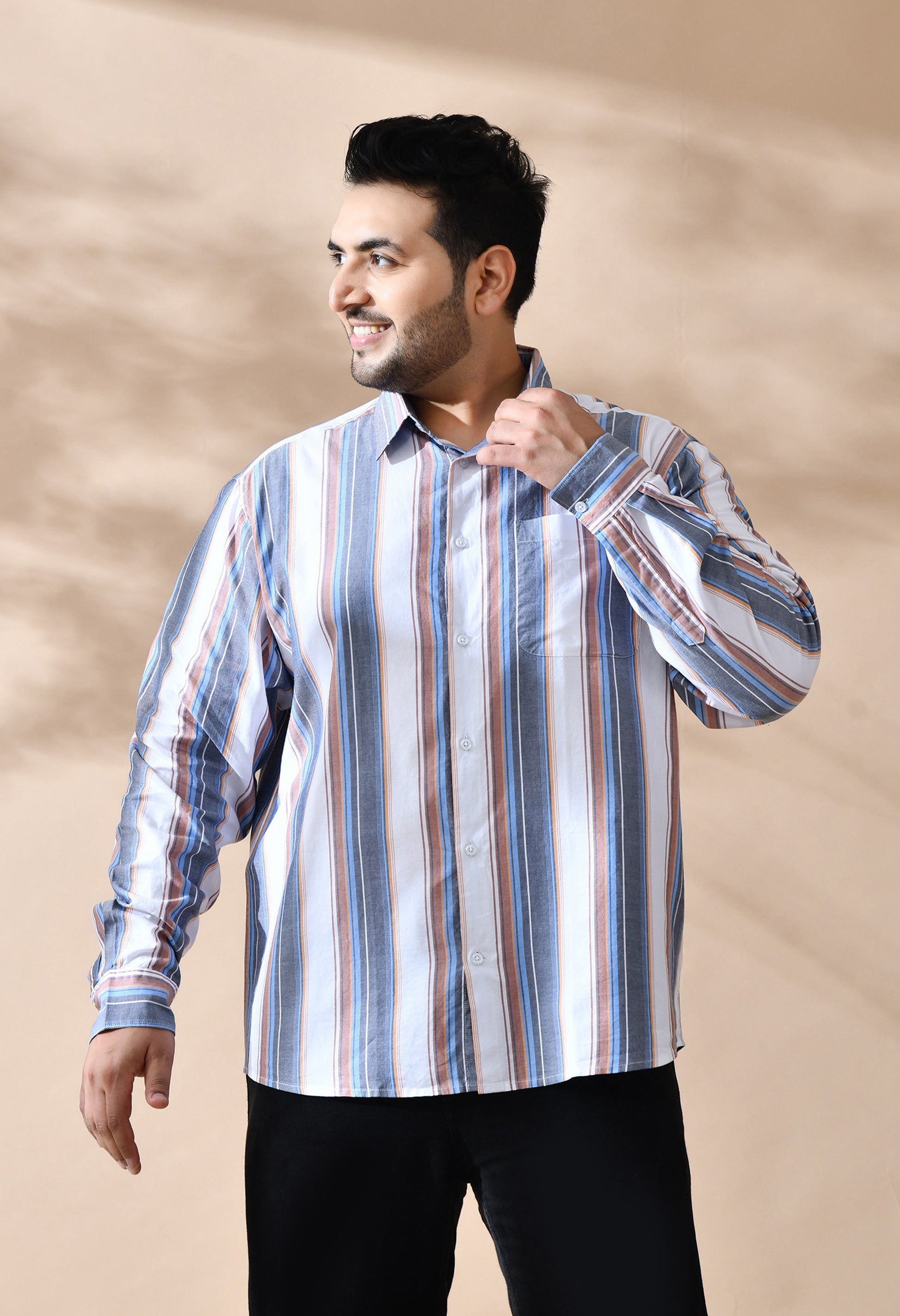 Men Cotton Mustered Navy and White Stripes Classic Fit Pocket Smart Casual Shirt