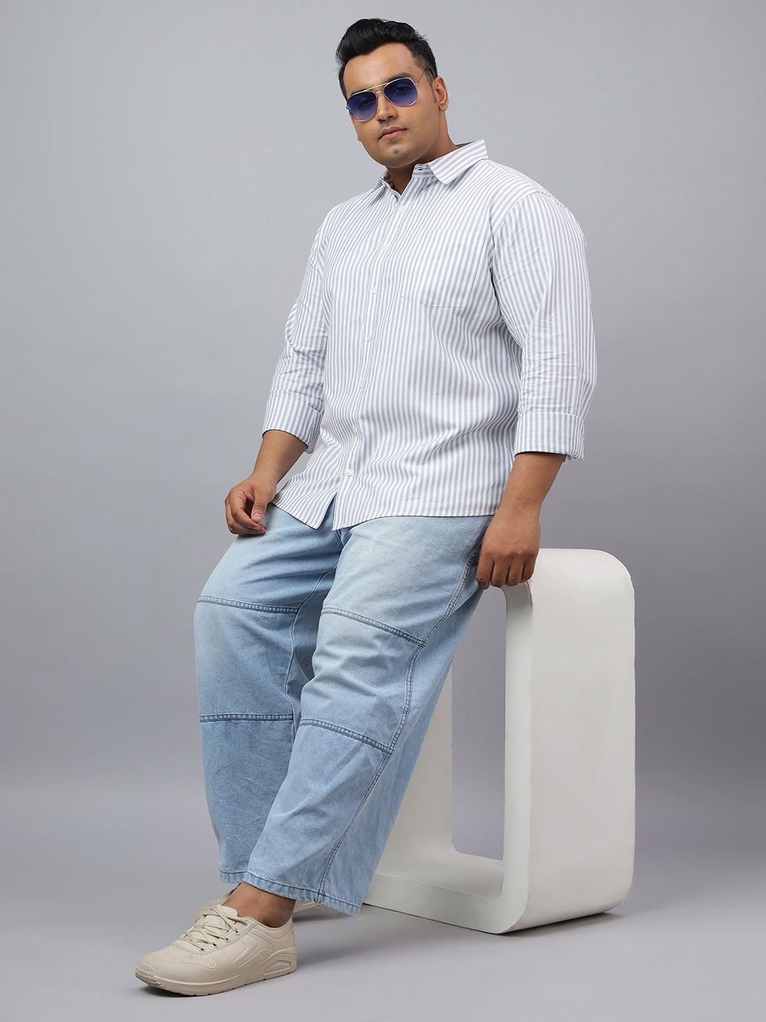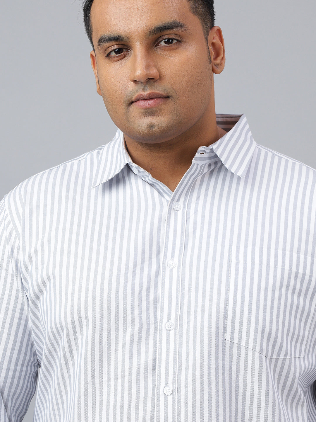 Men Grey Cotton Stripes 1 Pocket Slim Fit Casual Shirt