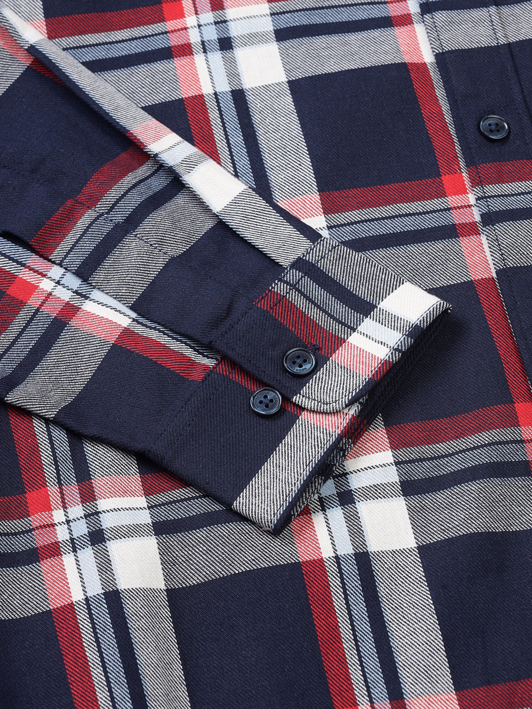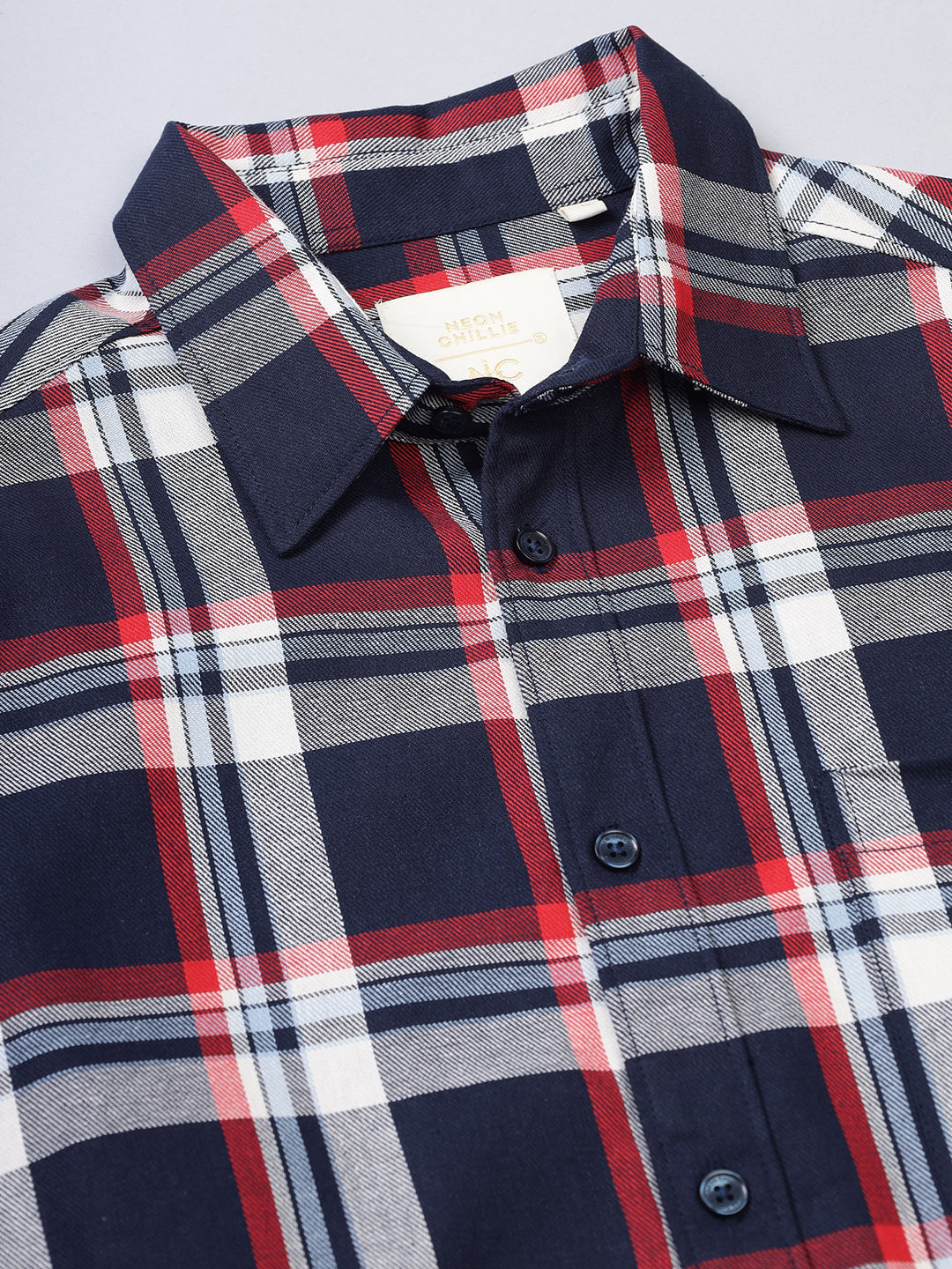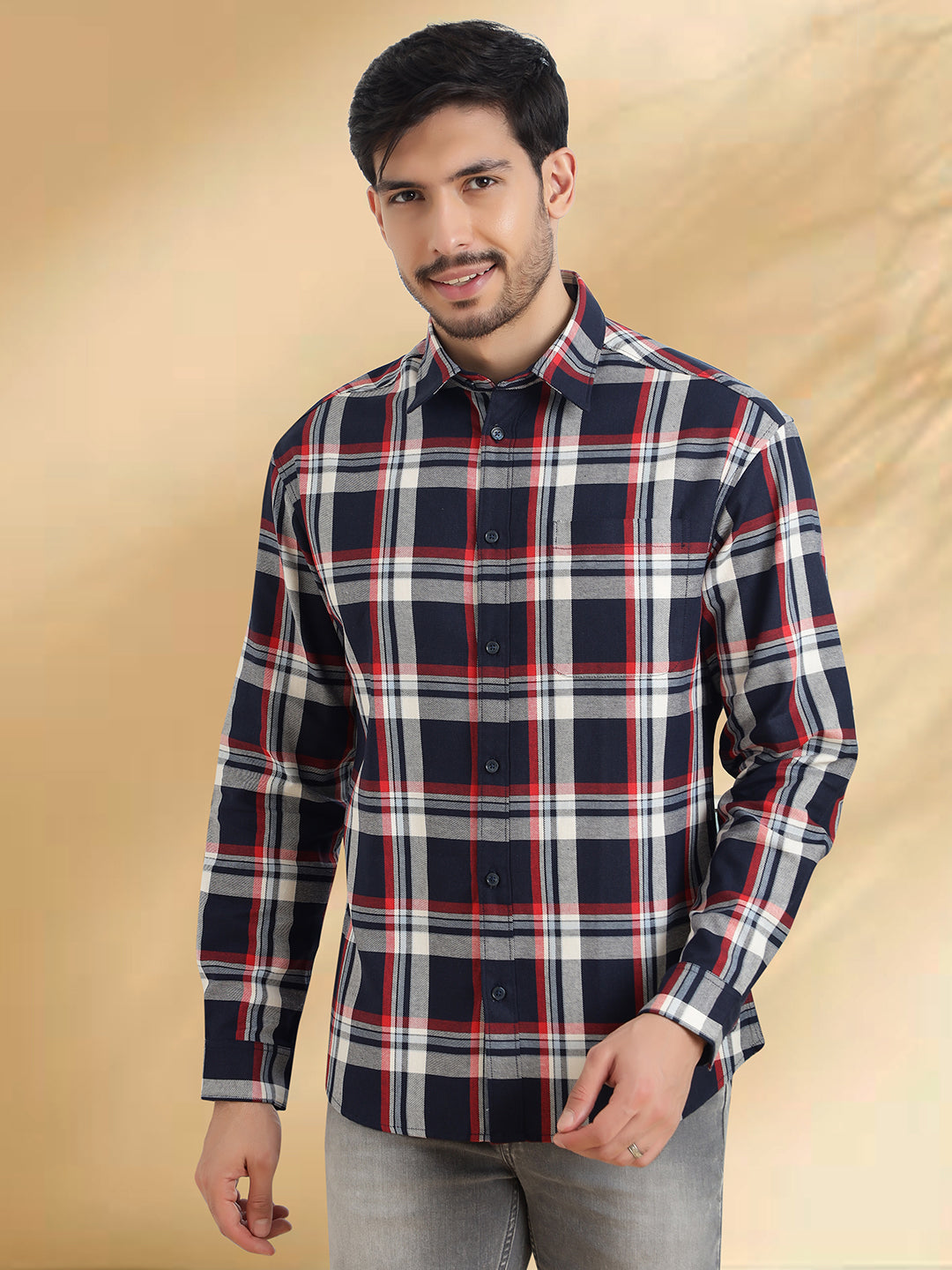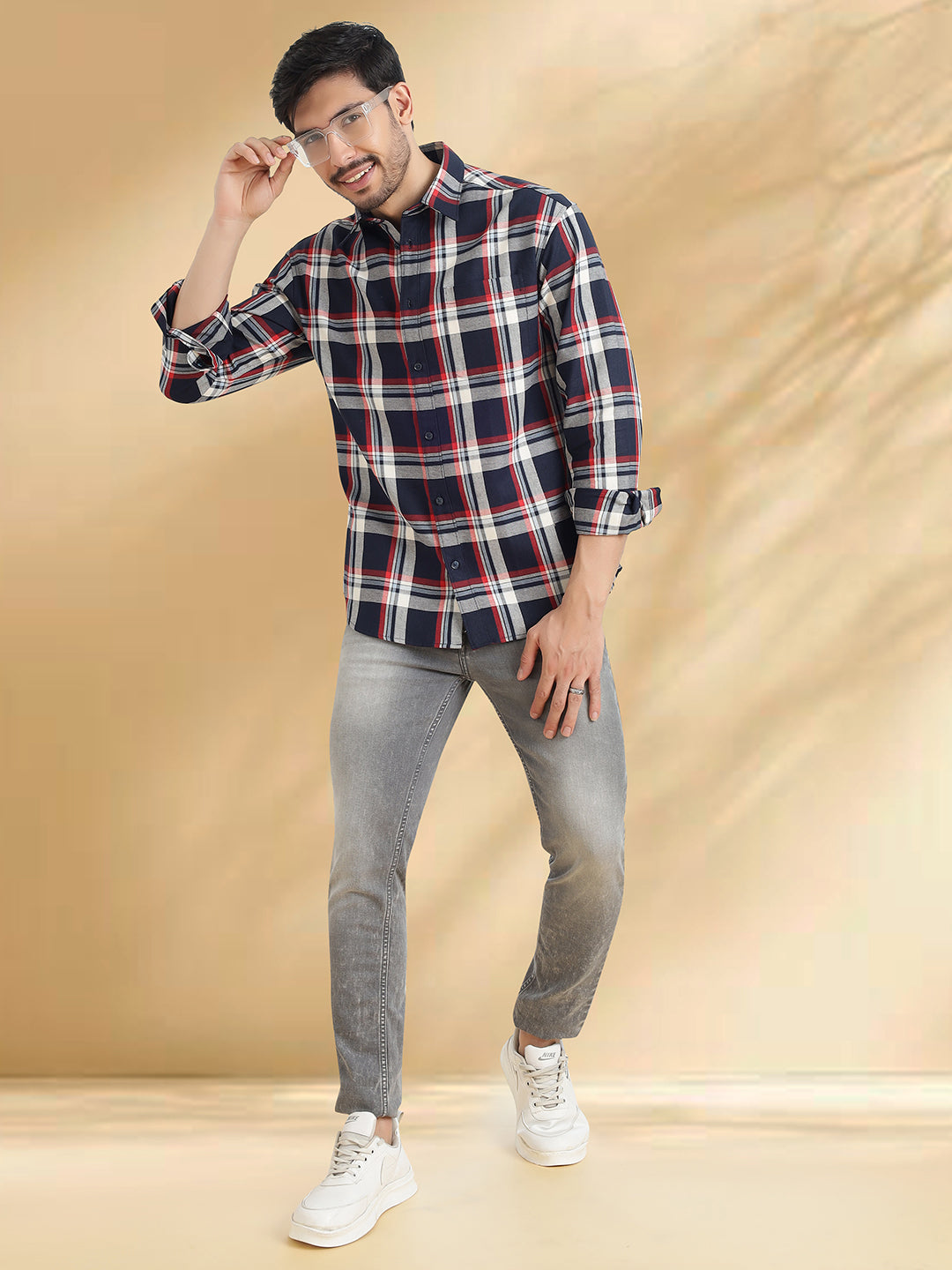 Men Navy, Maroon and White Checkered Classic Fit Smart Casual Shirt